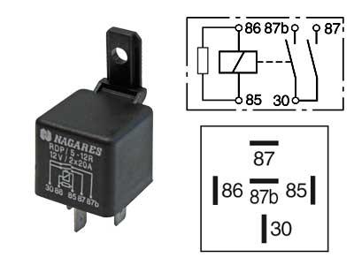 Tyyppi: 2x20AJännite: 12VVertailunumero: 8536201Kuvaus: (5-nap. 87b). B-kytkentä