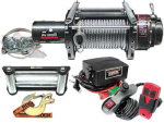 teräsvaijeri 24m x ø12.7mm, 1/2" koukku, nopea veto: 1.1m/min @8170kg, matala virrankulutus: 233A @8170kg, automaattinen kuormanpitojarru, vapaalle kytkentä, langaton ja langallinen kaukosäädin, power in/out. välityssuhde: 315:1, kestomagnetoitu moottori: 6.8hp (5kW), tela ø102x254mm, kiinnityspulttiväli: 304.8x114.3mm, paino 67.5kg